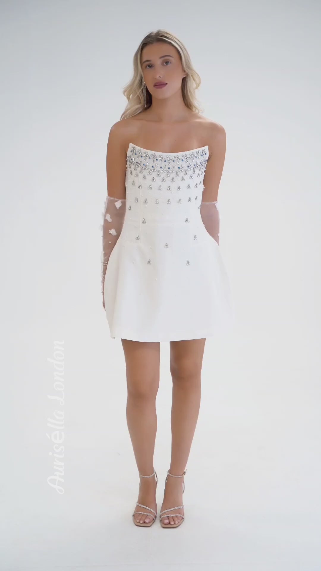 Note: Gloves worn by model are styling accessories and not included with the dress purchase.